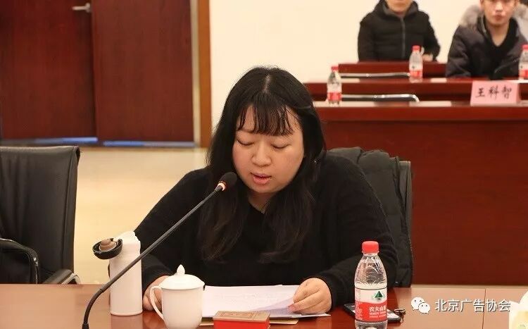 北京市工商行政管理局广告监督管理处处长王晓静出席了会议并在会上介绍了2017年北京市广告监管情况及2018年整治虚假违法广告工作重点;同时她对各广告经营单位、协会会员单位提出了要加强行业自律、加强广告导向、诚实守信经营等方面的要求。